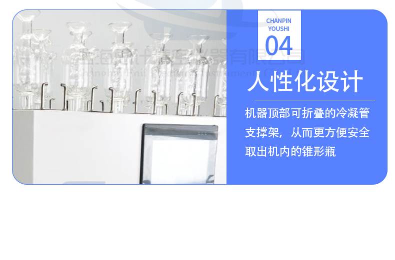 8、機(jī)器頂部可選配可折疊的冷凝管支撐架,從而更方便安全取出機(jī)內(nèi)的錐形瓶。